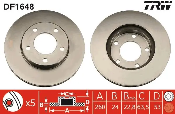 FORD SCORPIO I (GAE, GGE) 04/85-09/94SCORPIO I SEDAN (GGE) 09/86-12/94 Tarcza hamulcowa TRW DF1648 DF1648/LUC TRW