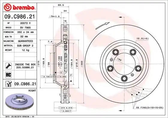 Producent: BREMBO, Indeks: 09.C986.21, EAN: 8020584239469