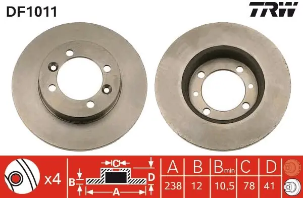 RENAULT 9 (L42_) 09/81-12/88 Tarcza hamulcowa TRW DF1011 DF1011/LUC TRW