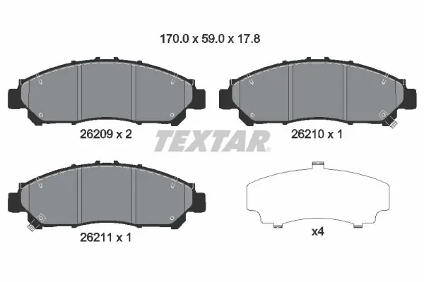 Zestaw klocków hamulcowych, hamulce tarczowe TEXTAR 2620901 2620901/TEX TEXTAR