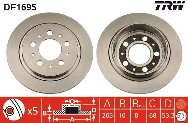 (265X10MM) VOLVO 740 KOMBI (745) 08/85-07/92740 (744) 08/84-08/92940 II KOMBI (945) 08/94-10/98960 (964) 08/90-07/94 Tarcza hamulcowa TRW DF1695 DF1695/LUC TRW