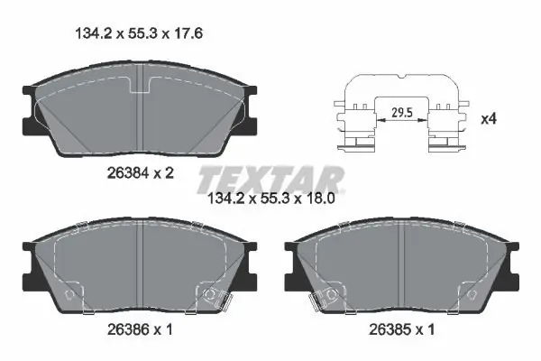 Zestaw klocków hamulcowych, hamulce tarczowe TEXTAR 2638401 2638401/TEX TEXTAR