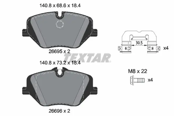 Zestaw klocków hamulcowych, hamulce tarczowe TEXTAR 2669501 2669501/TEX TEXTAR